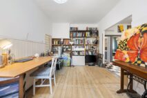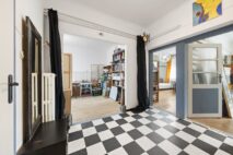 Všechny pokoje jsou neprůchozí. K bytu náleží sklep v přízemí. Byt prošel v průběhu posledních let rekonstrukcí rozvodu vody, elektřiny, plynu a výměny oken. Výhodou je vlastní vytápění kombinovaným plynovým kotlem z roku 2024. Na podlahách jsou zachovalé parkety, dřevěné palubky a dlažba. Měsíční náklady jsou 5.400 Kč včetně FO. Rozměry místností: Pokoj s kk je 20m2, ložnice 20,5m2, pracovna 13,5m2, chodba 7.5m2, koupelna 6,5m2, WC 1m2, komora 1,2m, lodžie 2m2 a sklep 3m2. Celkem 75 m2.