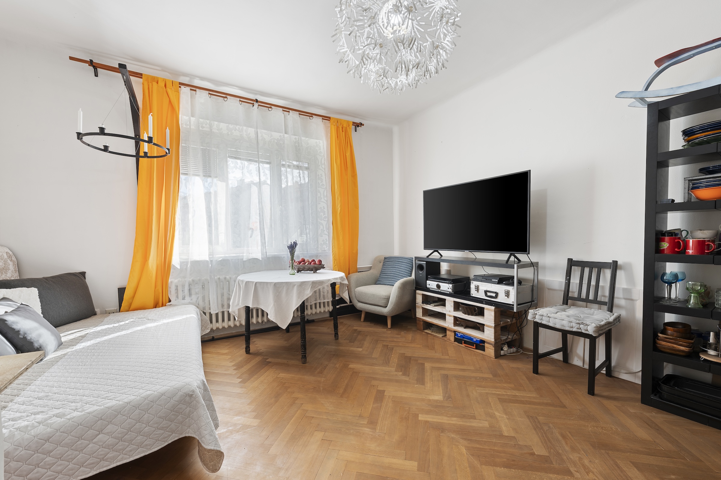 byt v OV o velikosti 3+kk s lodžií orientovanou do klidného vnitrobloku se zelení. Byt je umístěný ve 2.NP/3 cihlového domu, který se nachází v bezprostřední blízkosti parčíku s herními prvky pro děti a s oplocenou plochou pro míčové hry. Orientace světových stran je V-Z.