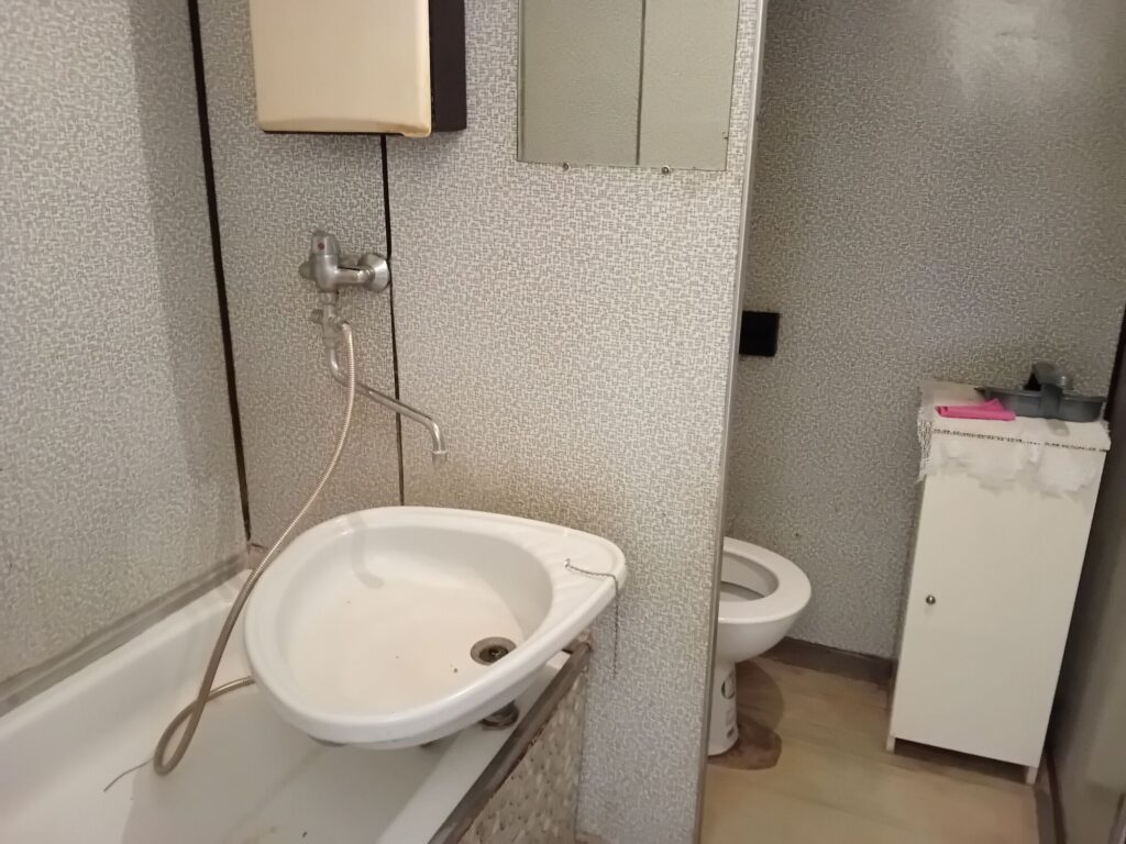 Natřeli jsme penetrací a barvou umakartové jádro (xkrát), položili dlažbu v koupelně a WC, vymalovali, natřeli topení, vyměnili kuchyňskou desku včetně dřezu, namontovali nové žaluzie, koupili nový koberec a opravili milion maličkostí.